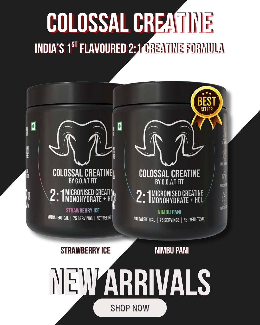 G.O.A.T Fit Colossal Creatine – 2:1 Formula - 2g Monohydrate + 1g HCl | 3g of Pure & Micronized Creatine for High Bioavailability and Fast Absorb, Muscle & Strength Formula | Nimbu Pani | 270gm