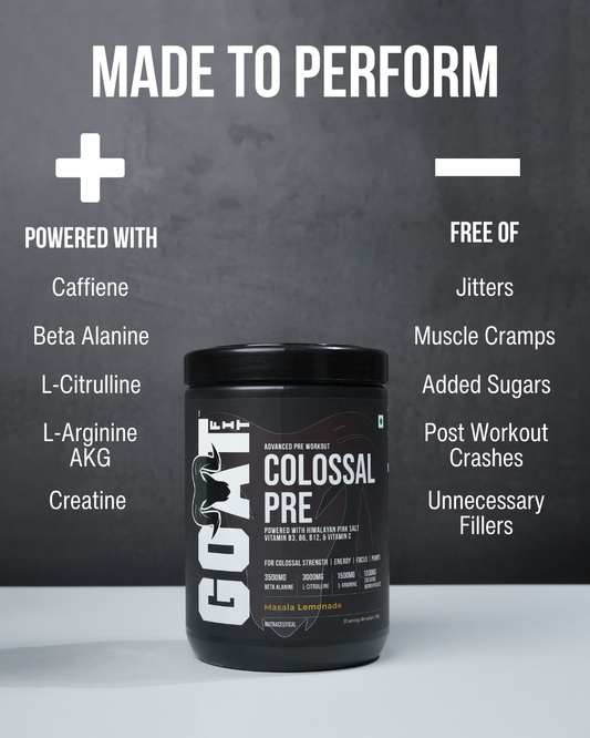 Colossal Pre - Masala Lemonade | Advanced Pre Workout for Colossal Strength, Energy, Focus and Pumps | 30/60 servings - 360gms