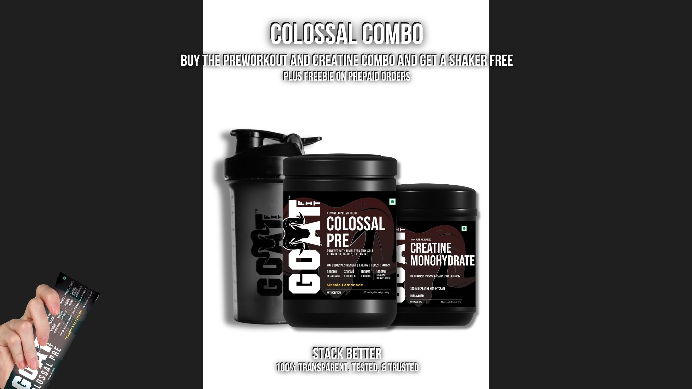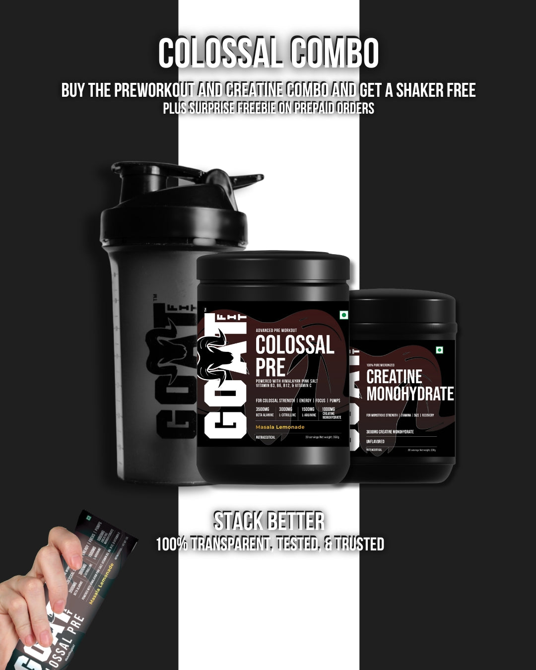 Colossal Combo | Colossal Pre Masala Lemonade 180gm Pre Workout + 100% Pure and Micronised Unflavoured Creatine 100gm